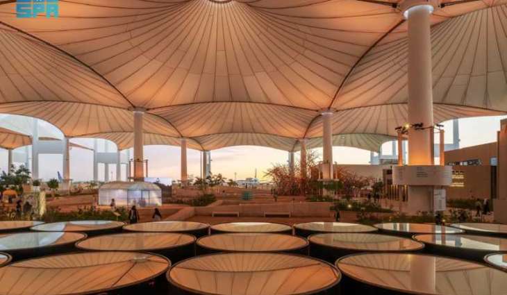 وفي الهواء الطلق، تحت ظلال المظلات المسنَّمة التي تستلهم شكل الخيام العربية، تتناغم الفنون المعاصرة مع إرث العمارة الإسلامية، حيث يضم قسم "المظلة" نحو 20 عملًا فنيًا حديثًا بتكليف من مؤسسة بينالي الدرعية.